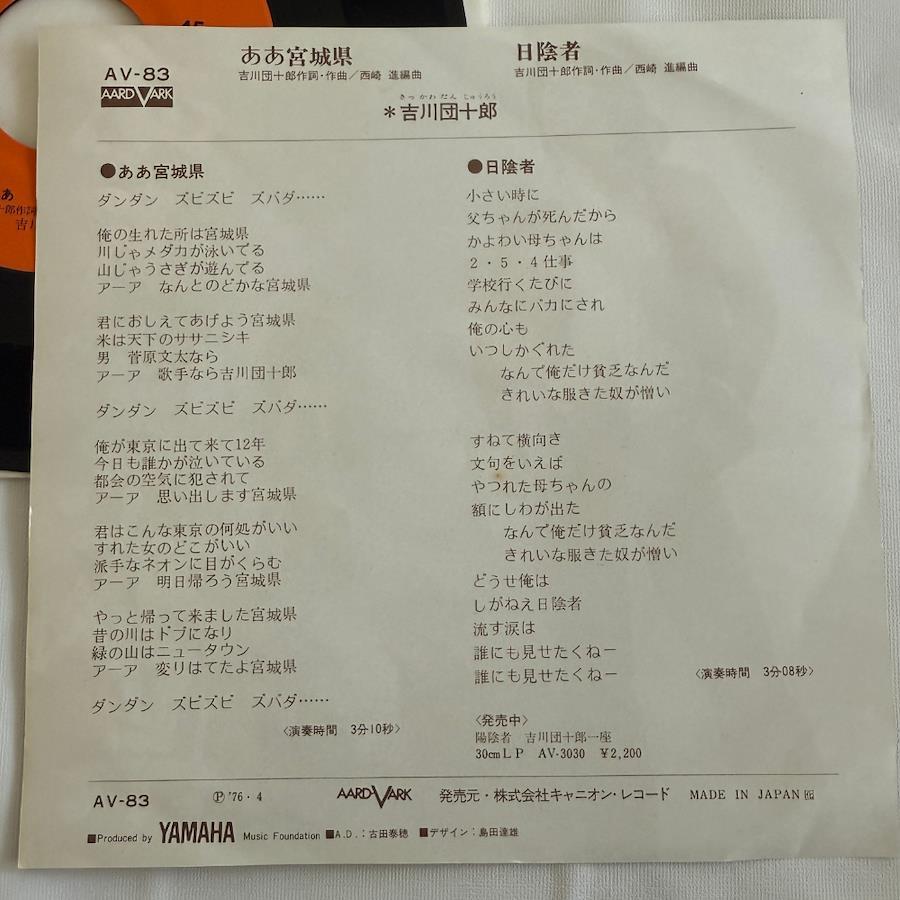 Danjuro Yoshikawa Showa Era Vintage EP Record Ah Miyagi Prefecture Hikagemono 7-inch Extended Play