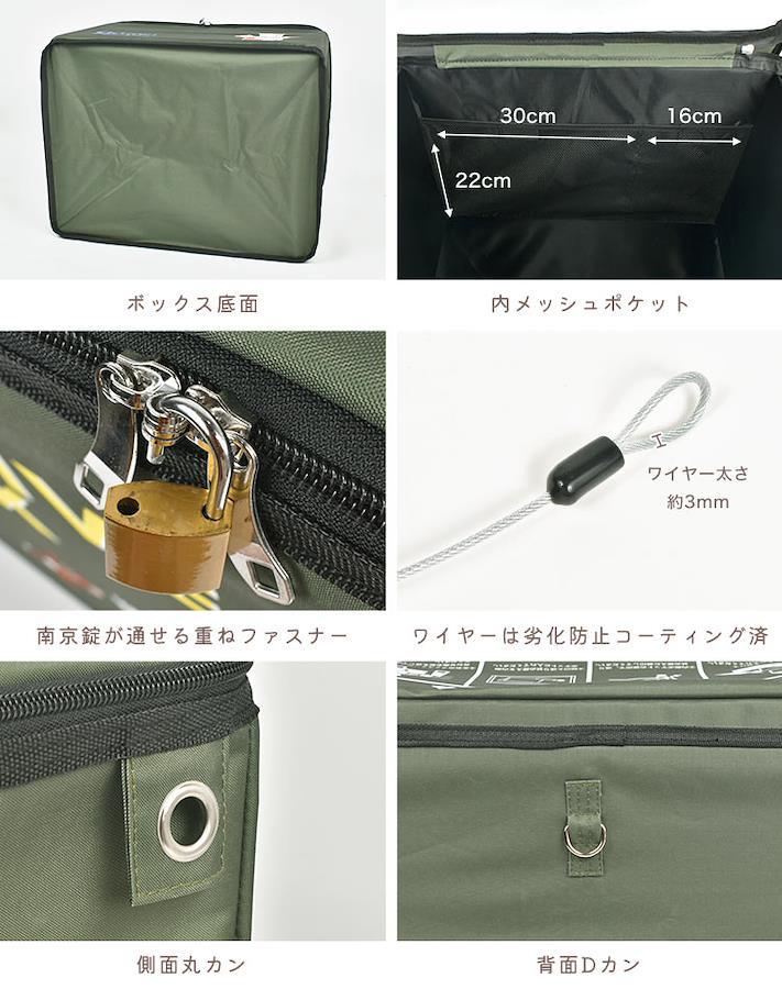■素材表生地:ポリエステル100%裏生地:ポリエステル100%側面の中芯:ポリプロピレン蓋の詰め物:ウレタンフォーム南京錠:鉄ダイヤル錠:プラスチックワイヤー:鋼