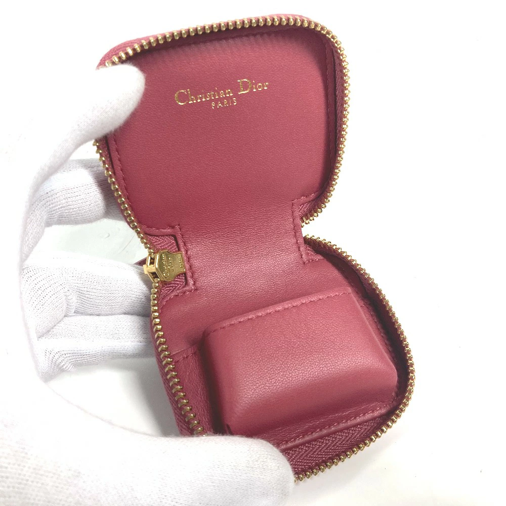 Dior ディオール アップル apple CDロゴ airpods エアポッズ チャーム付き イヤフォンケース レザー レディース ピンク 【中古】