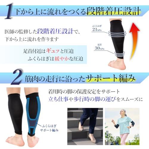 段階着圧設計と筋肉の走行に沿ったサポート編みにより、立ち仕事や歩行時の脚の運びをスムーズに。 ナイロン素材を使用しているため、蒸れにくくサラッとした履き心地 着脱がしやすく ズレにくい仕様 北青山D.CLINIC 阿保院長が監修 [素材]ナイロン、ポリウレタン [内容]サポーター2枚入り(両足用)