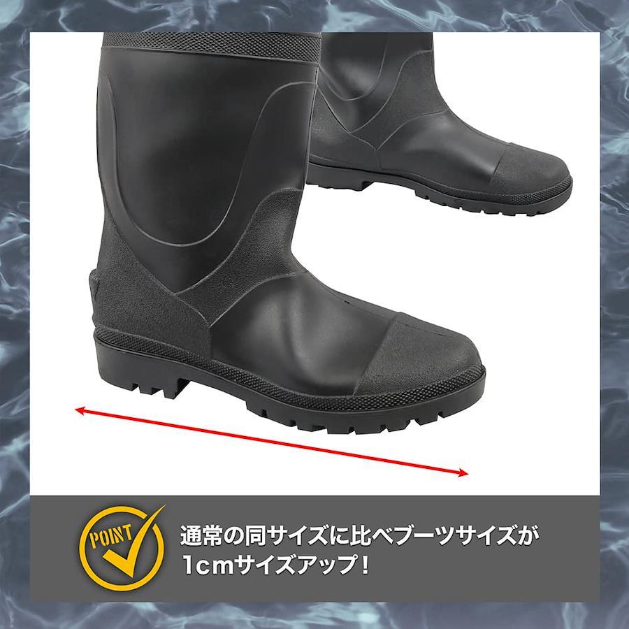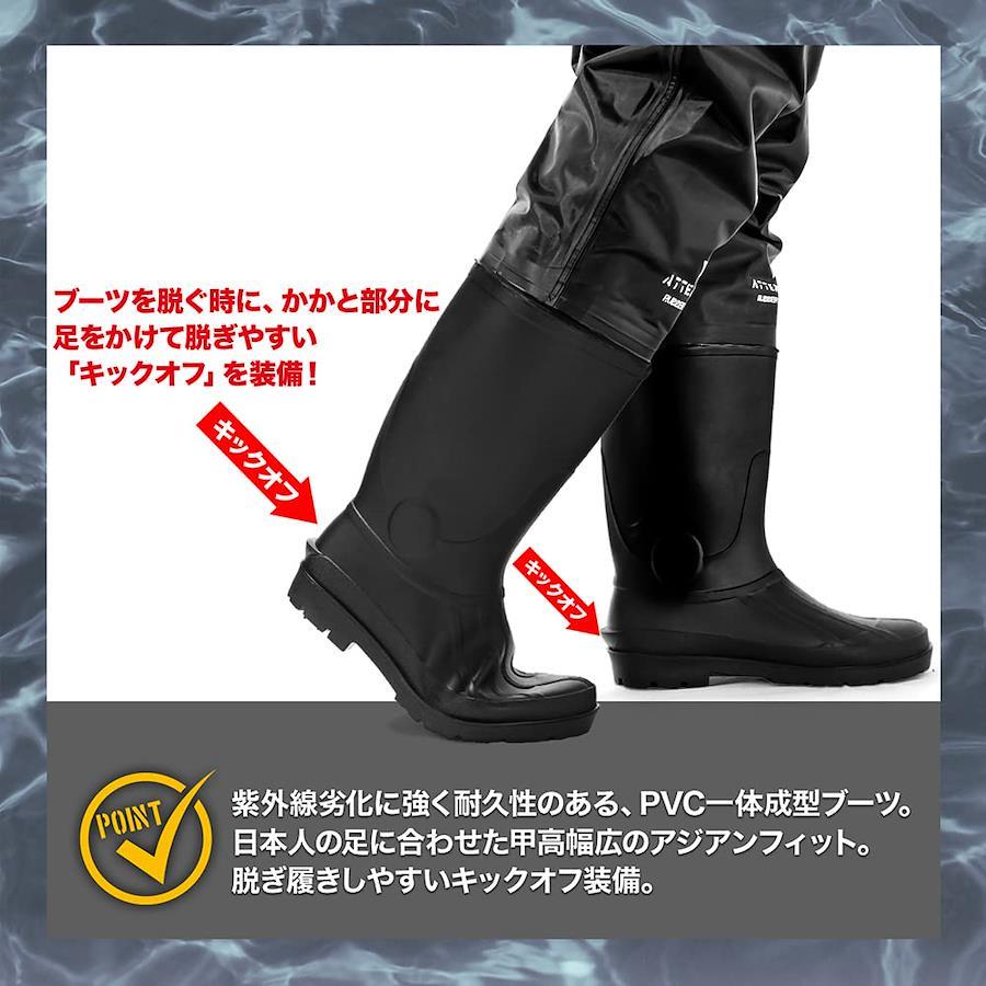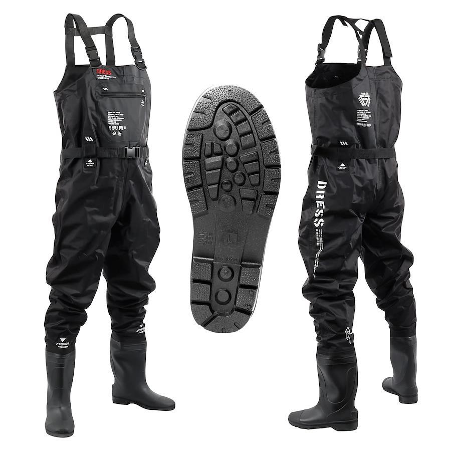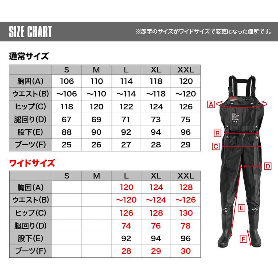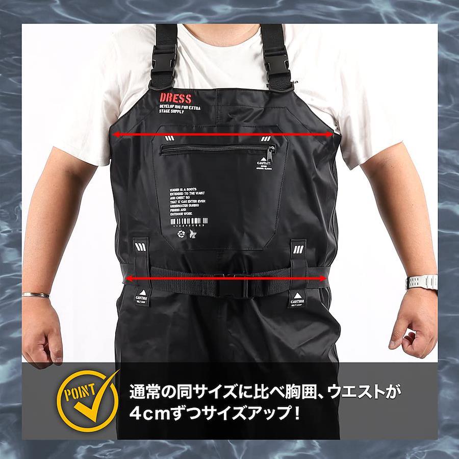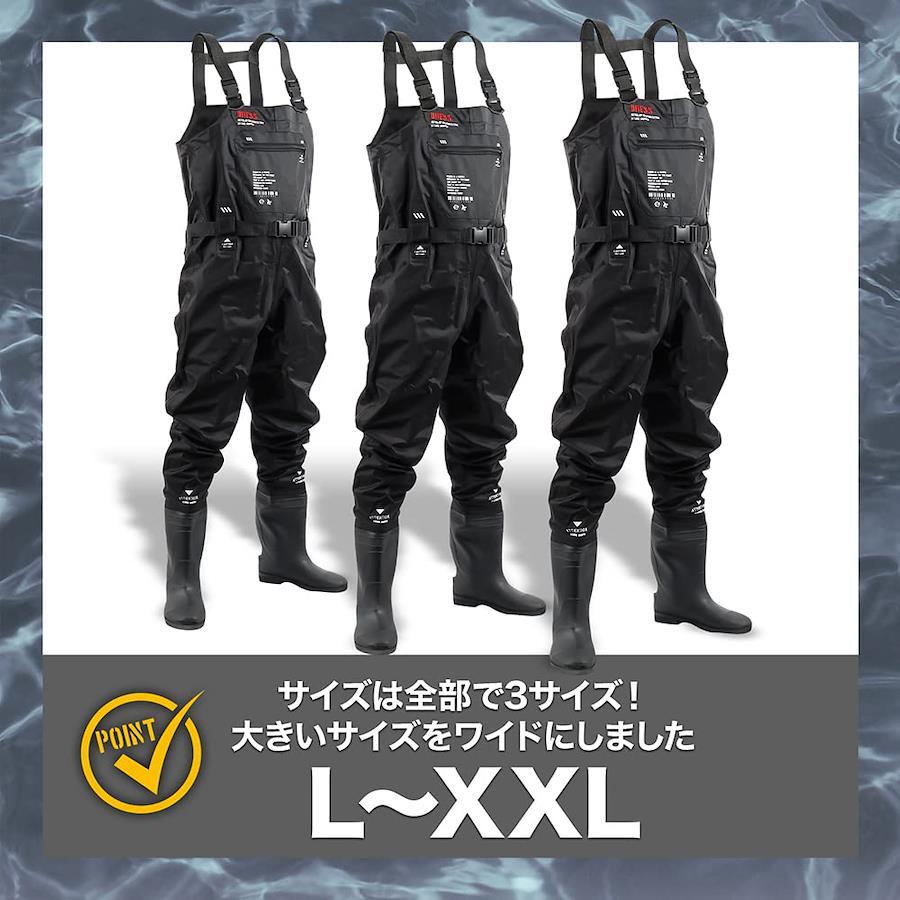 ■CHEST HIGH WADER AIRBORNE(チェストハイウェーダーエアボーン)★WADER(ウェーダー)とは?海や河川、池、湖、渓流などに水に入った状態で釣りを行うことを、「ウェーディング」と言いその際に着用する胴長靴の事です。足から胸までを覆う胴長靴ですので、履くだけで体が濡れるの防ぐ事ができます。ウェーディングには、陸や岩場・岸からではアプローチが難しいポイントを攻める事が出来たり、キャストがしやすい場所まで移動でき、釣り人にとって様々なメリットがあり釣果の上昇も期待できるのでウェーディングゲームには欠かせないアイテムです。又、近年では池や田畑の清掃や、雪かき、水害時等にも活躍が期待でき様々な用途にご使用頂けます。