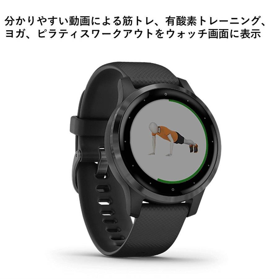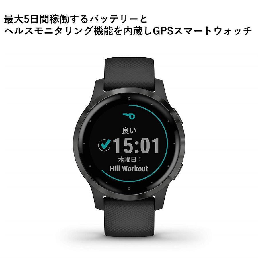 商品紹介最大5日間稼働するバッテリーとヘルスモニタリング機能を内蔵したGPSスマートウォッチ・Body Batteryエネルギーモニタリング、呼吸数や生理周期、ストレス、睡眠、心拍数1、水分補給などを追跡しながら、24時間健康状態を確認できます。・Spotify、LINE MUSICを含め、曲をウォッチに簡単にダウンロードできます。ワイヤレスヘッドフォン(別売)に接続すれば、スマートフォンなしで音楽を楽しめます。・20種類を超えるプリロード済みのGPSスポーツアプリとヨガや水泳などが含まれた室内スポーツアプリで、あらゆる動作を記録。・分かりやすい動画による筋トレ、有酸素トレーニング、ヨガ、ピラティスワークアウトをウォッチ画面に表示。・バッテリー寿命:スマートウォッチモードで最大5日間、GPSと音楽モードで5時間。