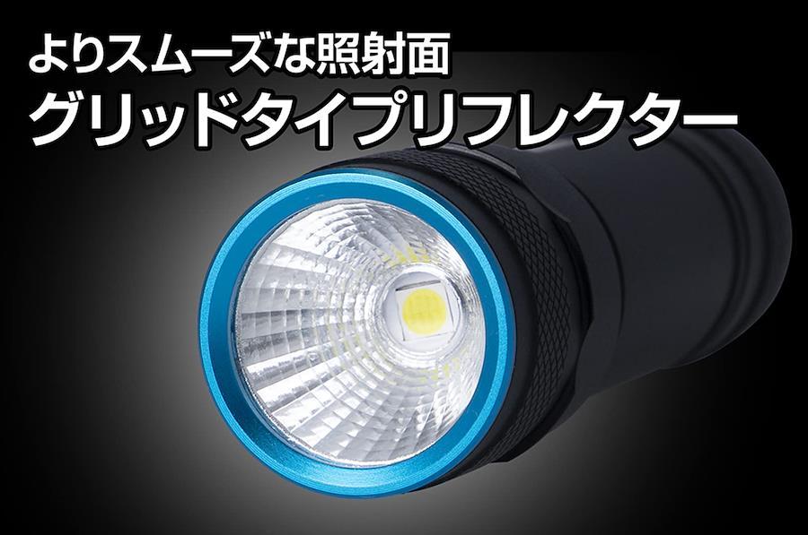 【グリッドタイプリフレクター】リフレクターの表面を多面加工することで、光の反射をコントロール。よりスムーズな美しい照射面を実現