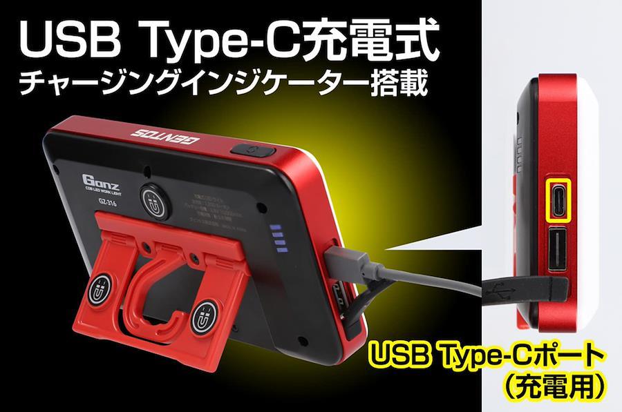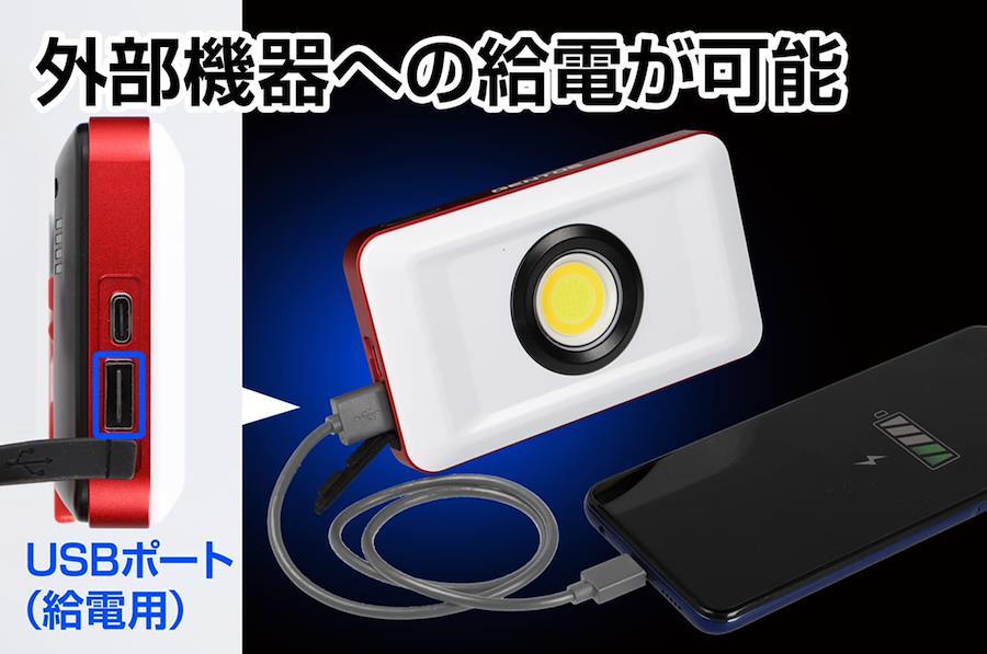 3色調色&各色3段階調光可能なコンパクト投光器USB充電式他のUSB機器へ給電可能 (5V/1A)