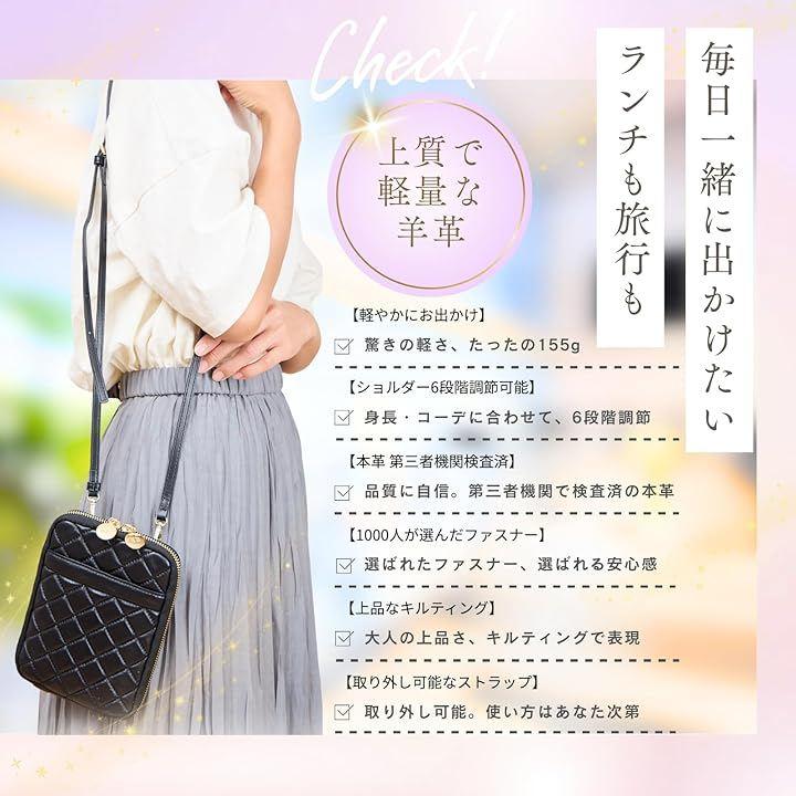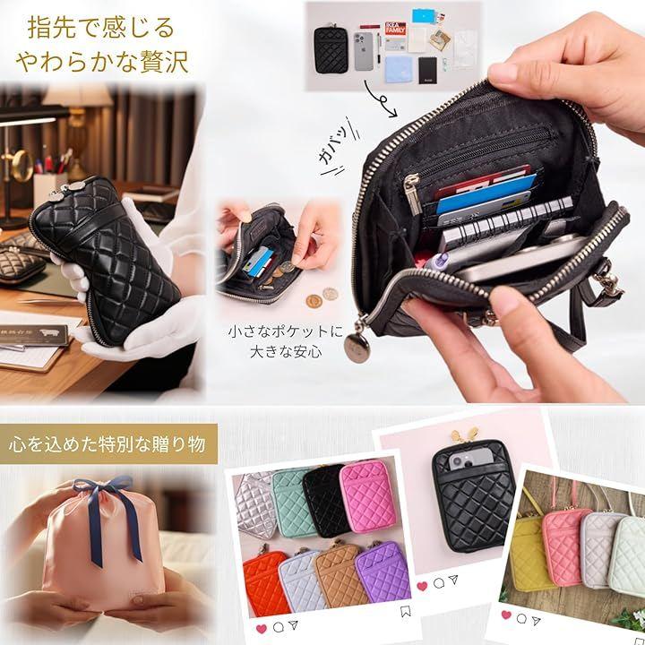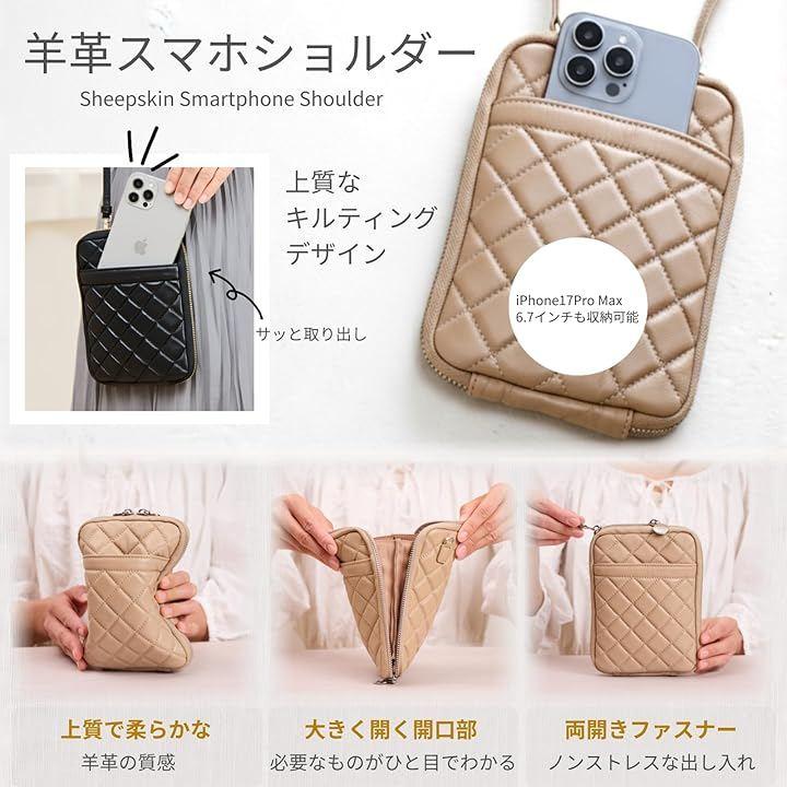 「多機能x上質デザイン」 子育てママも納得の便利なスマホショルダー 柔らかな羊革製のショルダー紐で肩掛けしても負担が少なく、長時間の使用でも快適な スマホショルダーレディース バッグです。