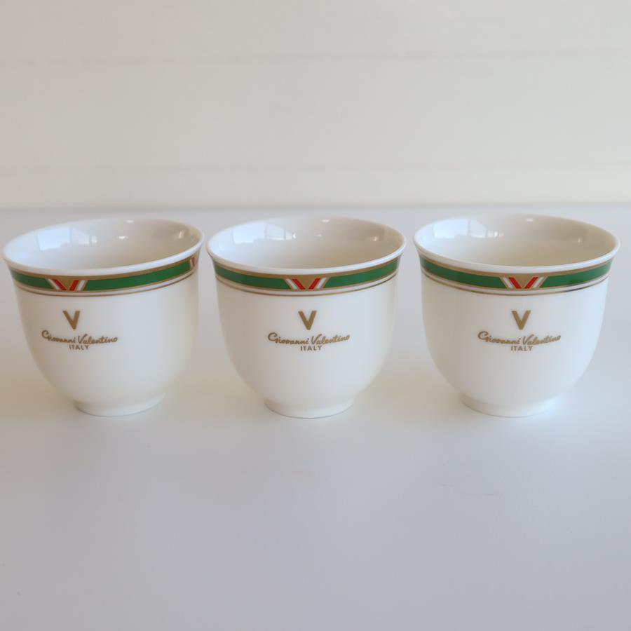 【詳細】■ ブランド:Giovanni Valentino(ジョバンニ・ヴァレンチノ)■ 原産国:イタリア■ 素材:磁器■ セット内容:- フリーカップ ×1(直径 約7cm/高さ 約12cm)- プレート ×1(直径 約12cm)- カップ ×3(直径 約7.5cm/高さ 約6.5cm)※1個ひびあり■ 状態:- 全体的に綺麗ですが、使用感があります。- カップ1点にひびあり(画像参照)。- 外箱・付属品なし。