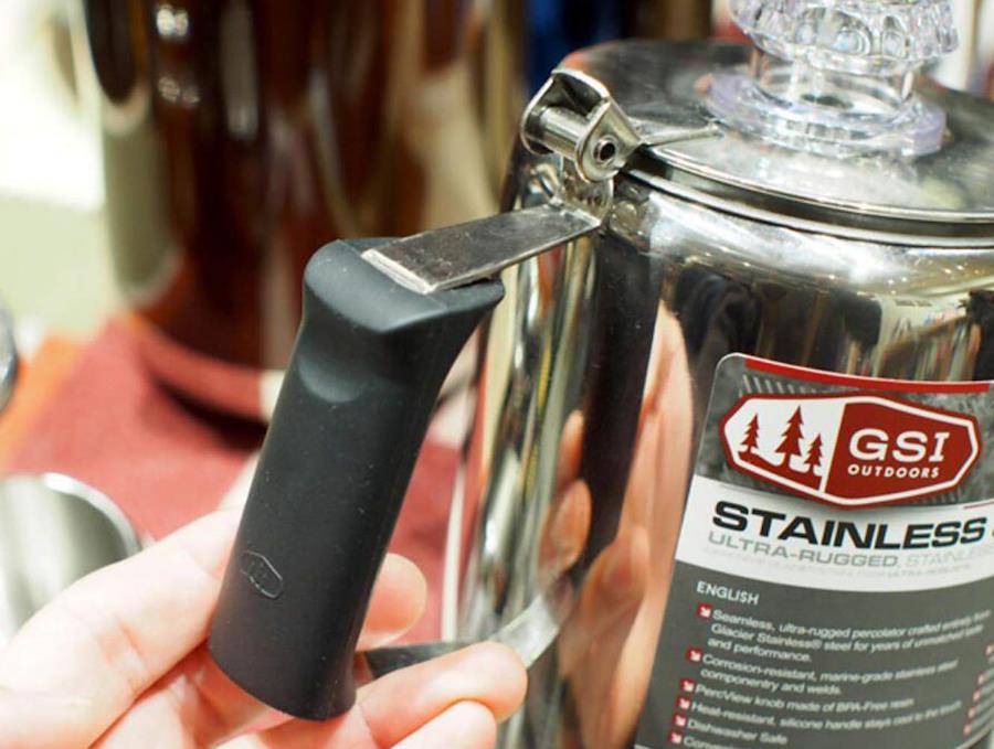 円柱形のクラシックなデザインの18/8ステンレススチール製パーコレーターです。家庭やアウトドアで美味しいコーヒーが手軽に味わえます。持ちやすいハンドルのデザインですので、コーヒーを上手に注ぐことができます。注ぎ口はコーヒーの滴がたれないデザインです。フタの取っ手はプラスチック製で、コーヒーの濃さを確認することができます。