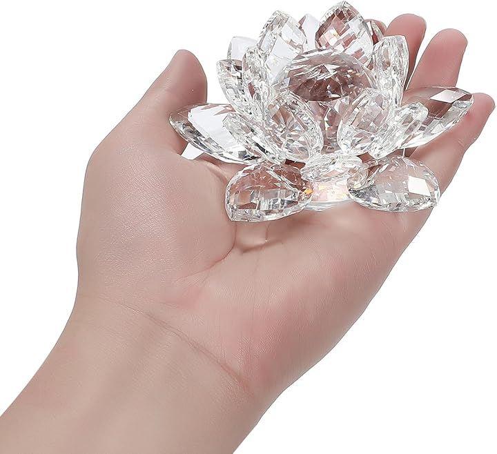 高品質 の クリスタル ガラスで作られた 蓮 の花置物は、光を美しく反射し空間を華やかに彩ります。