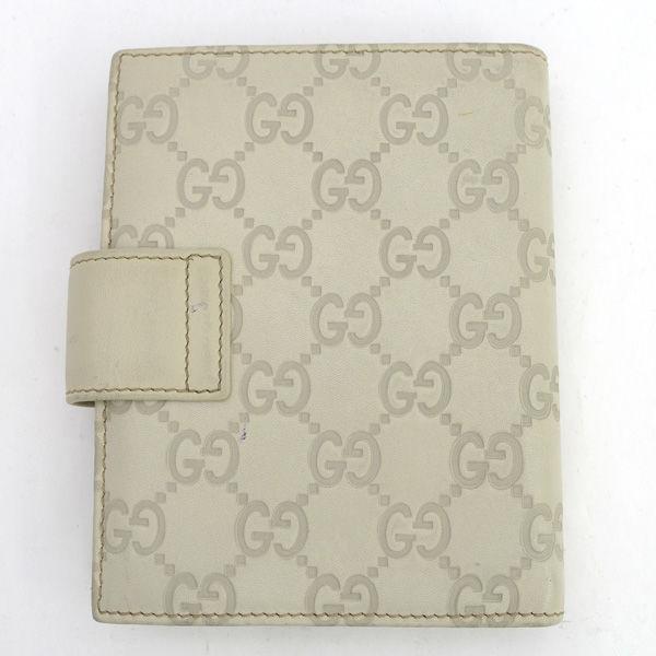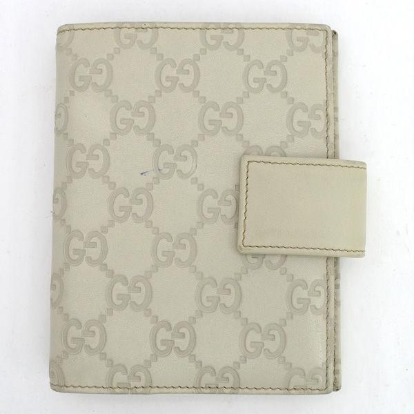 ・メーカー :GUCCI / グッチ・製品型番 :115240 0416・サイズ :横幅(W) (約cm):13,高さ(H) (約cm):14,奥行(D) (約cm):2,総重量 (約g):120,【カード入れ】:5,【ポケット】:2,・色(柄)の系統:ベージュ・デザイン :手帳・アドレス帳・素材 :レザー/本革/本皮・付属品 :箱-------------商品状態-------------・ランク :B・詳細 :スレ・金具跡・インク汚れ等がみられます。