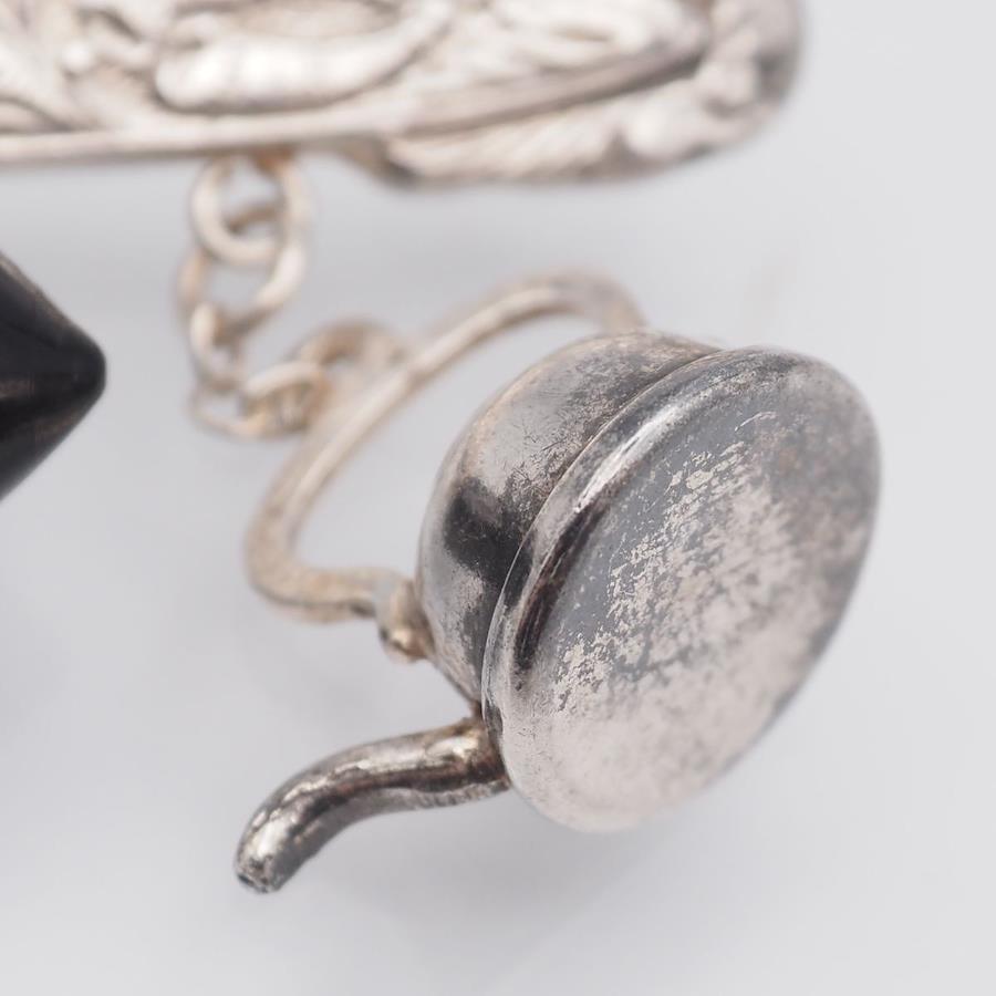 おそらく銀製かと思いますが、刻印が無いため断言できません。画像をたくさん掲載しておりますのでそちらでご確認とご判断をお願いいたします。