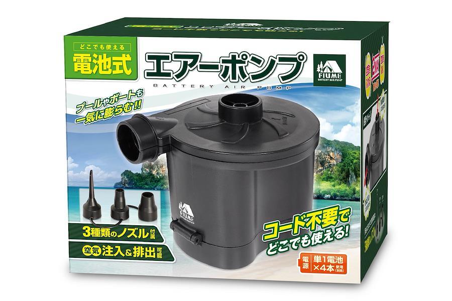 重量;約290g(本体)、約310g(セット合計)、約370g(箱込)3種ノズル×1セット(7mm・18mm・25mmノズル)電源:単1電池×4本使用(別売) 連続使用時間の目安:約10分(注入時)/約5分(排出時) 空気注入の目安:家庭用ビニールプール/約10分 【注意事項】 ※10分以上連続使用しないでください。空気を入れる・空気を抜くことができる2WAY仕様のエアーポンプ。 大型の浮き輪や、プール、フロート、ボートも簡単に空気を充填できます。 電池式なので、ACコンセントやDCシガーソケットなどの電源供給源がない場所でも使用できます。 海水浴場やプールなどのお出かけに便利なエアーポンプ。サイズ:約W13.5×D11×H11cm(本体)約W14×D11×H11.5cm(箱)材質:ABS(本体)・PP(ノズル)
