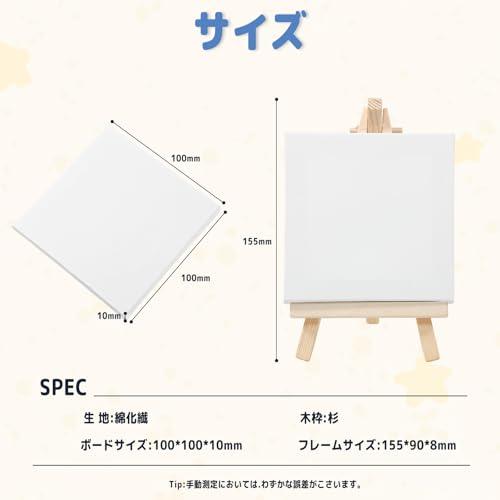 【パッケージ内容】サイズ:10*10*1cm。10つのミニキャンバスと10つのミニ木製イーゼルが含まれています。 【素材】100%コットンキャンバス - 自然な風合い、高い着色力、優れた触感を備えた長繊維綿で作られます。コットンキャンバスの表面は縮むことがなく、あらゆるコンディションで安定して使用できます。コットンキャンバスは顔料をよく保持し、自然な色調と光沢を示します。 【ミニイーゼル】小型、軽量、小さなキャンバス、扱いやすく、持ち運びが簡単で、飾るときに場所を取りません。写真や名刺などを置くのに最適で、面白いディスプレイを提供します。足を開くだけで簡単に自立します。角度も自由に調整できます。 【様々な場合で適用】油絵、水彩画、芸術作品、絵画、工芸、子供 、初心者、学校、 絵画教室、 などので適用できます。初心者からプロまで、大人から子どもまで、誰もが楽しむことができます。 【長期保存可能】キャンバスを保存したい場合は、まず背面の釘を丁寧に外し、木枠からキャンバスをゆっくりはがします。次にキャンバスを内?からゆっくり巻き取り、最後に巻いたカンバスを乾燥通気の良い場所に保管してください。 (#lf)(#lf)(#lf)商品購入前に、ストア紹介ページをご確認ください。