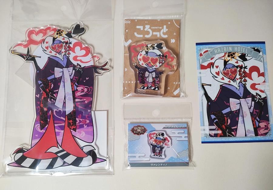 This set includes all four official items from the Animate collaboration —Acrylic Stand, Acrylic Mini Figure, Acrylic Pin, and Bromide (Photo Card).Each item was available only in Japan, making this a rare and highly sought-after collectible for Hazbin Hotel fans worldwide.