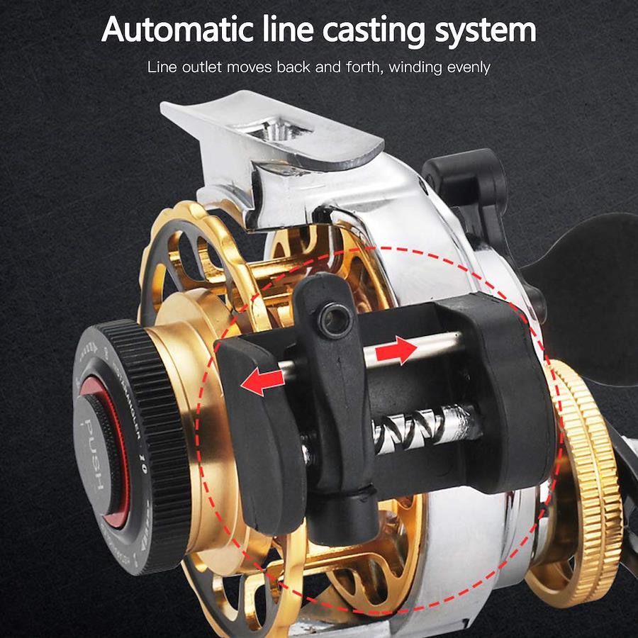 この自動ワイヤースプレッドフィッシングリールは、10 + 1ボールベアリング、3.6:1ギア比、中空アルミニウム合金スプール、長時間の釣りに最適なタックルで手を離すことができます特徴: 自動配線システムにより、自動ラインキャスティングと手動ラインキャスティングの両方が可能です スムーズなパフォーマンスのための10+ 1ボールベアリングと3.6:1ギア比 より滑らかで、耐摩耗性と耐食性のためのアルミニウム合金中空スプールとベアリング 20個の強力な磁石を内蔵したワンボタンの強力な磁気減速減速機能を柔軟に制御できます スムーズで頑丈な回転のための快適なグリップを備えたEVAハンドルノブ仕様: 材質:アルミ合金 カラー:ゴールド ボールベアリング:10 + 1 比率:3.6:1 ドラッグ:6kg / 13.2lb ライン容量:3#/ 100m アイテム重量:288g / 10.2oz パッケージサイズ:12 * 11 * 8.6cm / 4.7 * 4.3 * 3.3inパッケージリスト: 1 *フィッシングリール