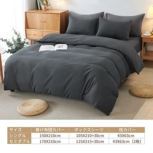 【セット内容・仕様】「掛け布団カバー・150x210cm(1枚)」:片側にファスナーを使用、布団留め紐8ヶ所付き。「ボックスシーツ・105X200+30cm(1枚)」:全周ズレ防止ゴム付き、通常サイズより大きめなので、高さ3-28cmの敷き布団とマットレスの底まで包むことが可能。「枕カバー・43X63cm(1枚)」:封筒式で出し入れが簡単です。 【優しい肌触り】ポリエステル100%の生地を使用。シワや毛玉ができにくい寝具カバーセットです。きめ細やかなピーチスキン加工で柔らかくて肌に優しいから、敏感肌の方でも安心してご利用頂けます。 【優れた通気性・速乾性】汗をかきやすい暑い夏の日でも湿気を素早く吸収して発散し、サラッとした肌触りを保ってくれます。さらに抜群の速乾性により湿気による細菌などの増殖を抑えることができます。四季を通じて長くご愛用頂けます。 【丸洗いOK】家庭用の洗濯機で洗うことが可能です。手間をかけずに日常の清潔はいつでも簡単にできます。汗をかきやすい季節はもちろん、ペットやお子様に汚されてしまった際にもご安心です。 【品質保証】HOdo Homeでは商品をお買い上げになった日から一年間保証付きです。万が一商品に何か問題がございましたら、いつでもお気軽にメールにてお問い合わせ下さい。