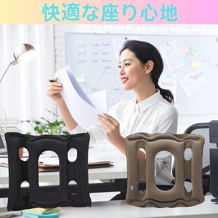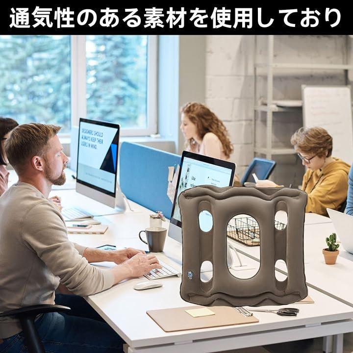 「快適な座り心地」エアークッションは、長時間のデスクワークやフライト中の腰やお尻への負担を軽減し、快適な座り姿勢をサポートします。