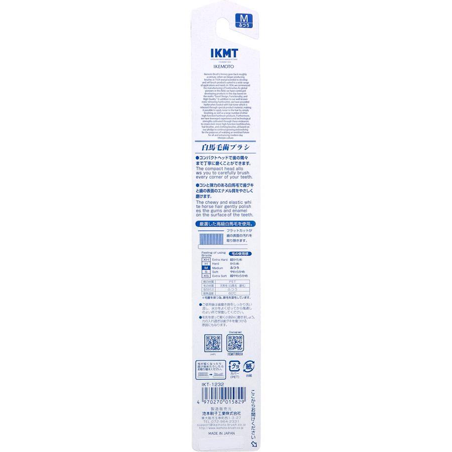 厳選した高級白馬毛を使用。●コンパクトヘッドで歯の隅々まで丁寧に磨くことができます。●コシと弾力のある白馬毛で歯グキと歯の表面のエナメル質をやさしく磨けます。●フラットカットが歯の表面の汚れを取り除きます。※10%豚毛混。