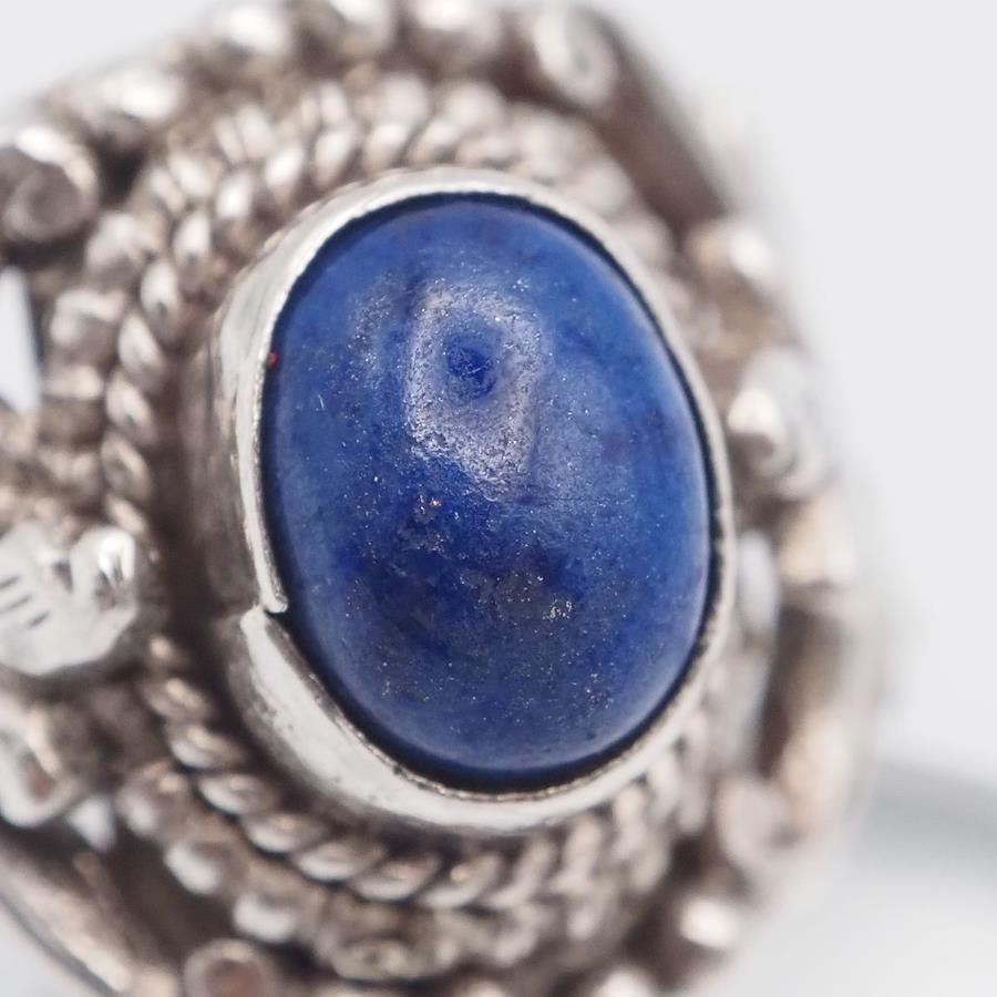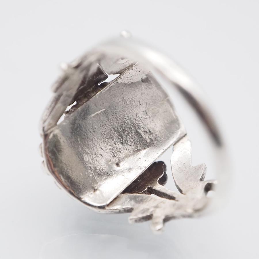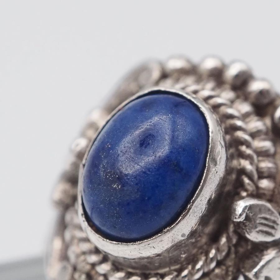 おそらく銀製かと思いますが、刻印が無いため断言できません。画像をたくさん掲載しておりますのでそちらでご確認とご判断をお願いいたします。