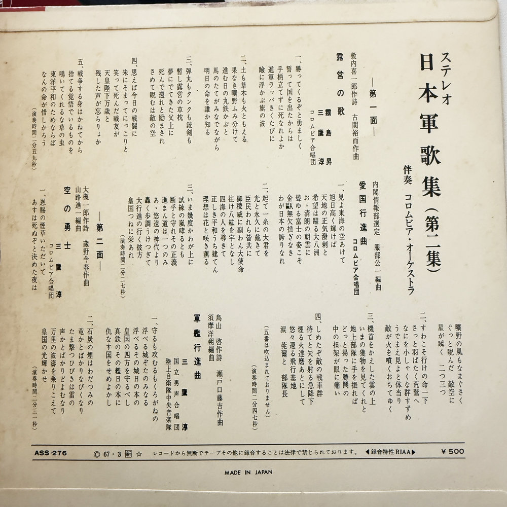 Japanese Military Songs: Bivouac Song, Gunkan March, Showa Era Vintage EP Record, 7-inch Single, Extended Play