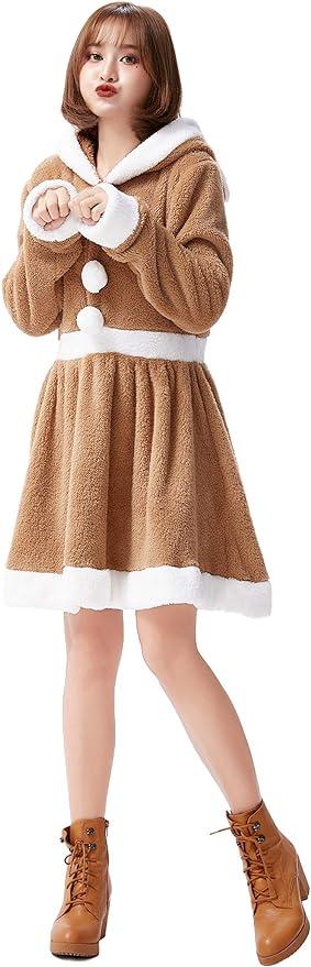 ■商品名[JUNDOMECY] クリスマス コスプレ トナカイ レディース ふわふわ 可愛い サンタ 衣装 着ぐるみ 大きいサイズ袖 ワンピース フード付き サンタクロース 仮装 クリスマス コスチューム 親子服 イベント パーティー 新年会 文化祭 (XL)