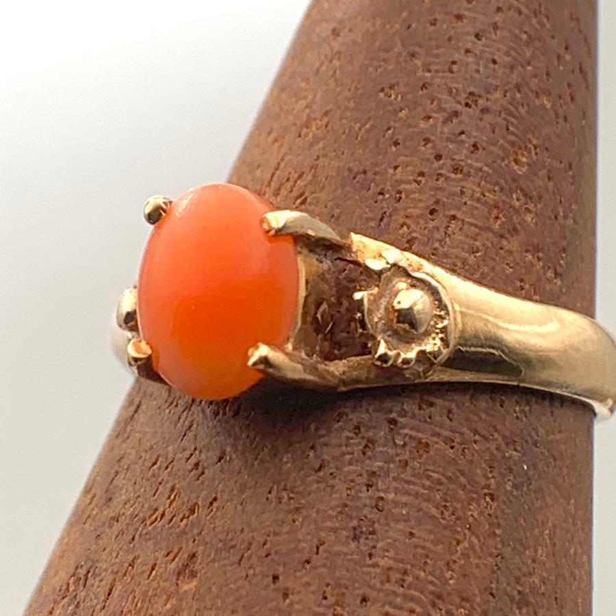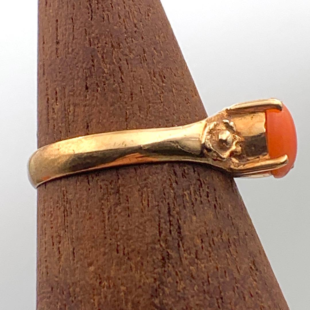 K18 珊瑚リング ゴールド 2.1g 9号 K18刻印ありレディースリング サンゴ 指輪