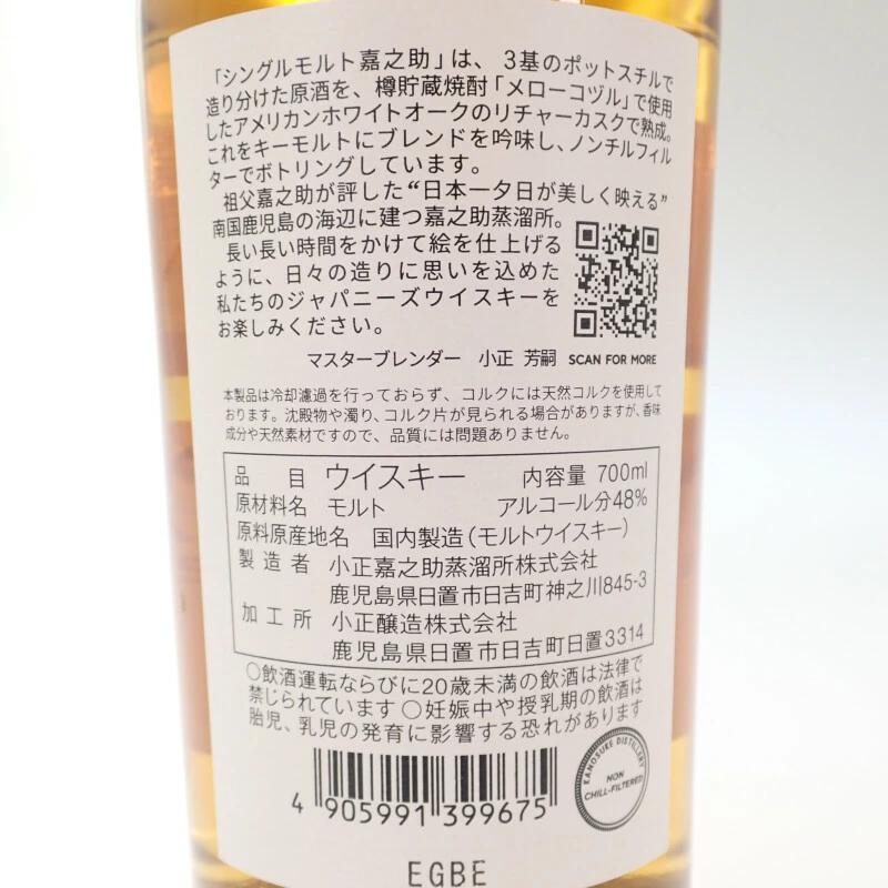 | 品名 | 嘉之助 シングルモルト お酒 アルコール 48% 700ml |