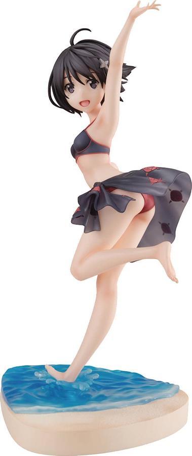 アニメ「痛いのは嫌なので防御力に極振りしたいと思います。2」より、主人公・メイプルが水着装備で登場! デザインはこのフィギュアのための描き下ろしです。メイプルのメイン装備「闇夜ノ写」をイメージさせる黒と赤のビキニスタイル。取り外し可能なパレオは「黒薔薇ノ鎧」とおそろいのバラがポイントです。いつもの移動速度からは考えられない軽やさで波打ち際を走る姿も必見です。