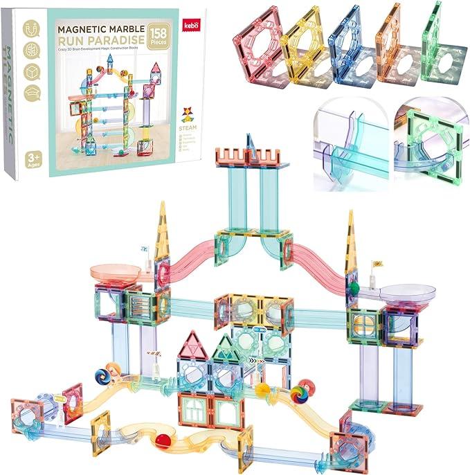 ■商品名kebo 知育玩具 おもちゃ 磁石ブロック ビー玉転がし 積み木 立体パズル クリスマス プレゼント 3歳 4歳 5歳 6歳 お誕生日 入学 入園 お祝い 出産祝い マグネット ブロック ボールコースター (208pcs)