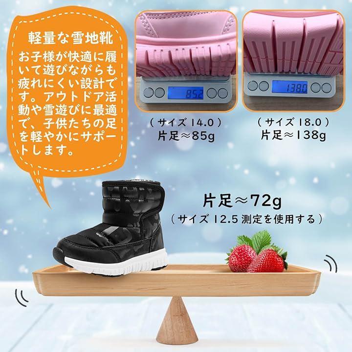 長時間のアウトドア活動や雪遊びに最適で、子供たちの足を軽やかにサポートします。