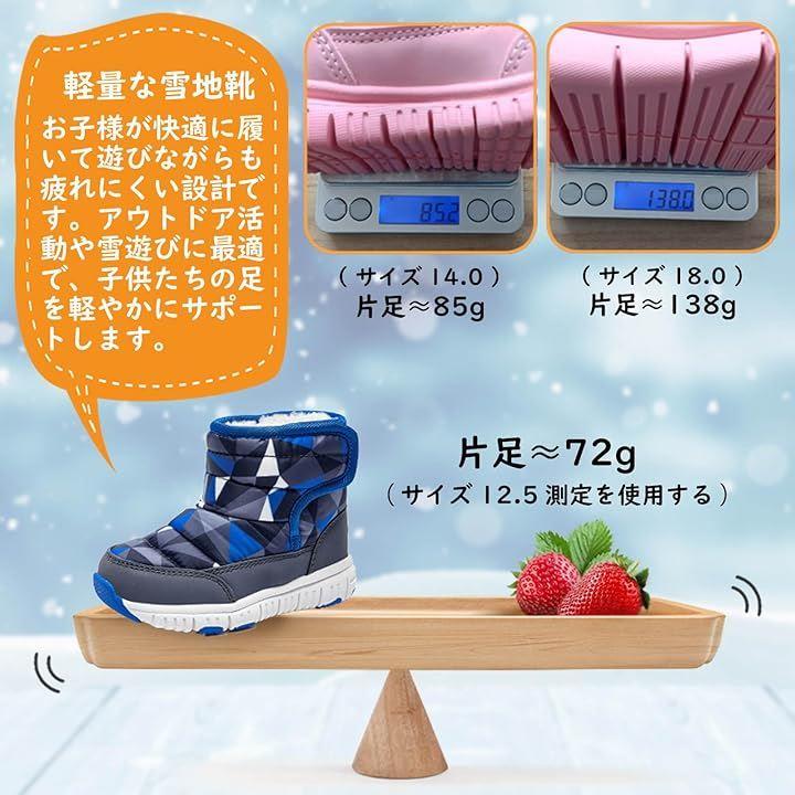 長時間のアウトドア活動や雪遊びに最適で、子供たちの足を軽やかにサポートします。