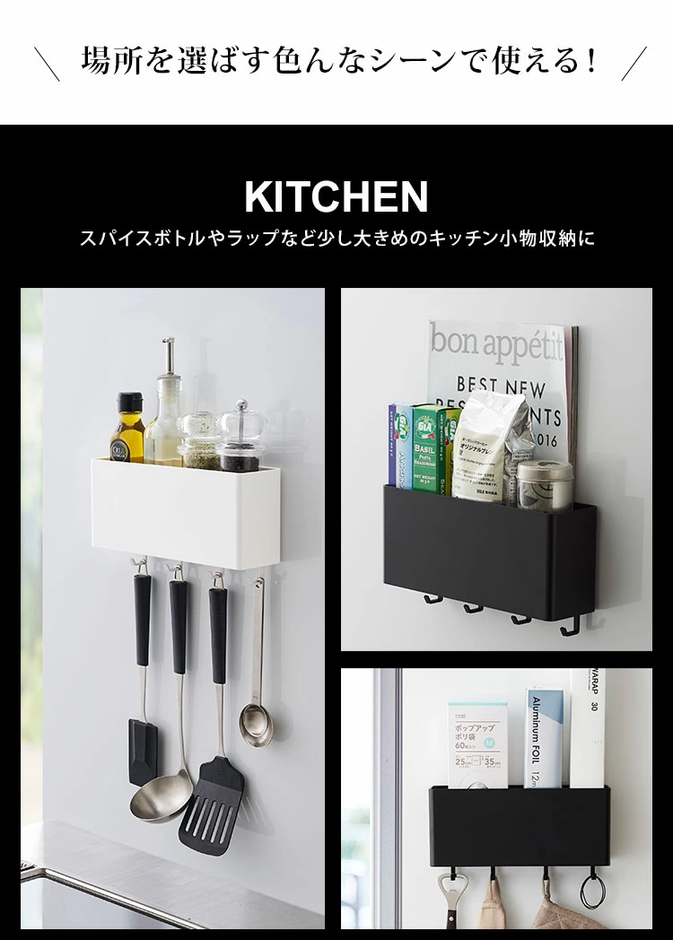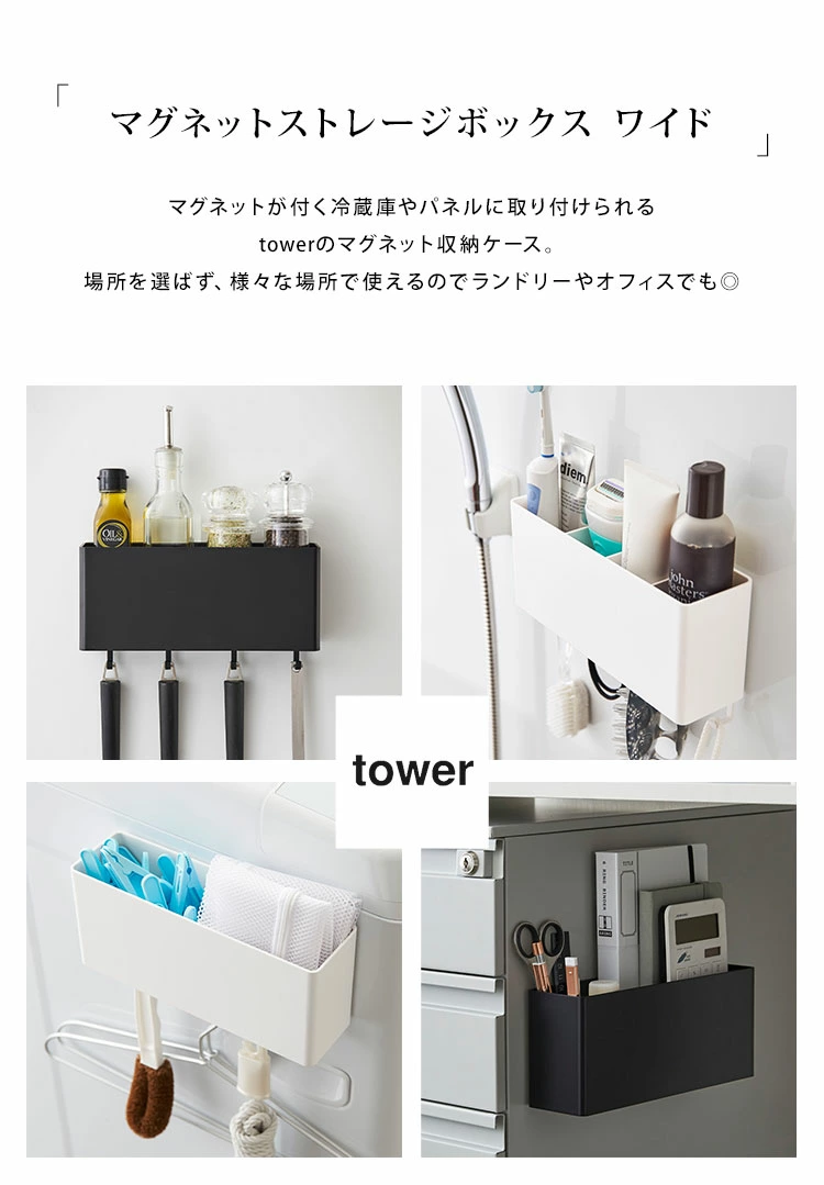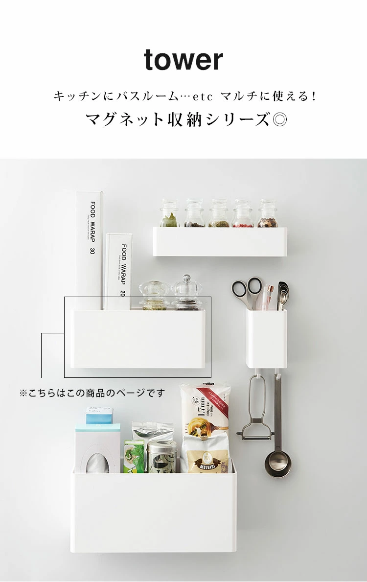【マグネットストレージボックス ワイド】丁寧な暮らしをするおしゃれさんたちにお届けする、シンプルながらもアイデアのつまったtowerのストレージボックスシリーズ。背面部分がマグネットになっているマグネットストレージボックス。キッチン・バスルーム・オフィス…etc用途に合わせて色んな場所で使用できます。