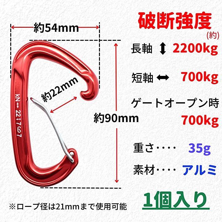 「素材」アルミ A7075 「重量」35g/個 「サイズ(約)」全長:90mm 幅:54mm *ロープ径:21mmまで