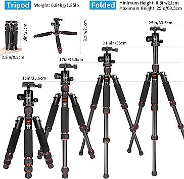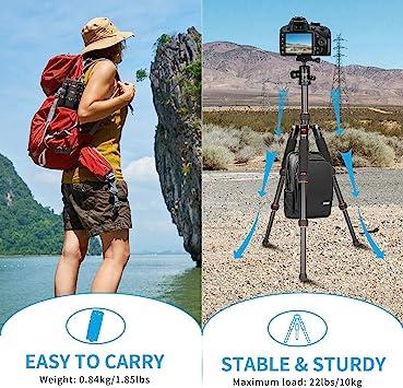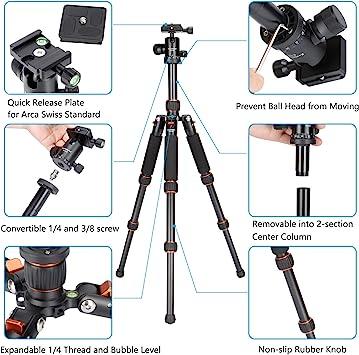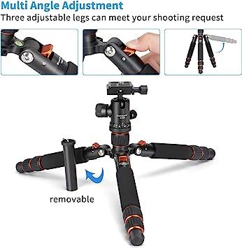 【頑丈な構造】この三脚は、最先端の CNC 機械加工技術を使用しています。 高強度アルミニウム合金の脚とねじ込み式ロック設計、耐久性と安定性。最大10kgの荷重に耐えられます。【多機能三脚】3 段階の脚角度調整システムにより、柔軟な射撃が可能です。 最大作業高さは 63.5 cm、ミニ作業高さは 21 cm、取り外し可能な 2 セクション センター コラム設計により、ローアングル撮影を実現できます。【360度パノラマ雲台】ボールヘッドを搭載、カメラの向きを楽に調整でき、自由にフレーミングを可
