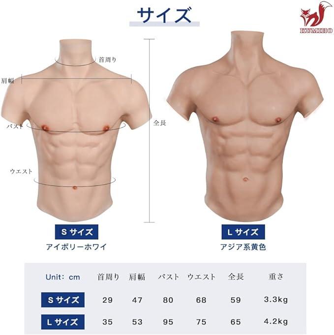 【実感】高級シリコン材質で作り上げ、無毒、無臭なので安心安全の製品です。肌触りは柔軟で、?丈です。筋肉のリアルな引き締め感と肉感があり、黄金比の胸筋と腹筋があって、瞬間的にマッチョに変身して、かつてない自信を得られます。