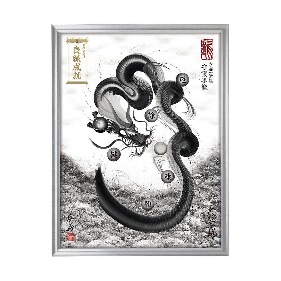 【商品の特徴】・京都一筆龍描画の種類/色彩は【26種】よりお選びいただけます<昇運龍14種(双龍5種/1体龍9種)> <守護龍10種(双龍2種/1体龍8種)> <縁結び龍2種(双龍2種)>・『京都一筆龍の御加護/御利益の象徴=胴体部分を一切途切れさせず一筆で描く動画』のQRコード印字ステッカー(2色/4サイズ)を同封お納めいたしております・描画に記載可能なお願い事は6種のご祈願内容より御選定いただけます心願成就/事業繁栄/金運上昇/健康祈願/家内安全/良縁成就・国内生産の高級額縁(デッサン額)を使用。額縁の色/機能は7種よりお選びいただけます。・龍の眼に光を宿し生気を吹き込む『龍の瞳(ラインストーン)』加工・京都一筆龍絵師手島啓輔署名、落款入り・御贈答のご利用も多く、懇切丁寧な包装