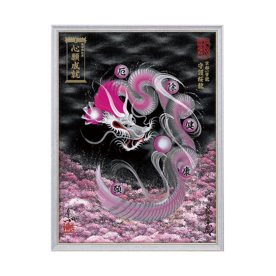 【商品の特徴】・京都一筆龍描画の種類/色彩は【26種】よりお選びいただけます<昇運龍14種(双龍5種/1体龍9種)> <守護龍10種(双龍2種/1体龍8種)> <縁結び龍2種(双龍2種)>・『京都一筆龍の御加護/御利益の象徴=胴体部分を一切途切れさせず一筆で描く動画』のQRコード印字ステッカー(2色/4サイズ)を同封お納めいたしております・描画に記載可能なお願い事は6種のご祈願内容より御選定いただけます心願成就/事業繁栄/金運上昇/健康祈願/家内安全/良縁成就・国内生産の高級額縁(デッサン額)を使用。額縁の色/機能は7種よりお選びいただけます。・龍の眼に光を宿し生気を吹き込む『龍の瞳(ラインストーン)』加工・京都一筆龍絵師手島啓輔署名、落款入り・御贈答のご利用も多く、懇切丁寧な包装