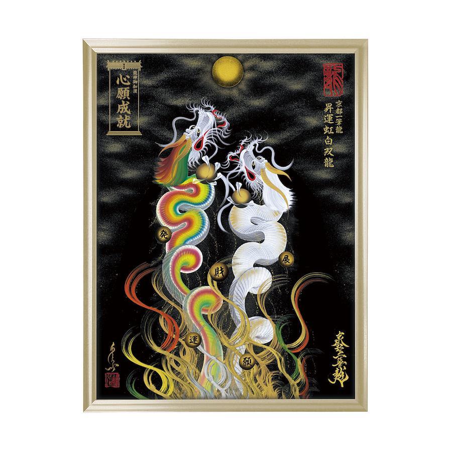 【商品の特徴】・京都一筆龍描画の種類/色彩は【26種】よりお選びいただけます<昇運龍14種(双龍5種/1体龍9種)> <守護龍10種(双龍2種/1体龍8種)> <縁結び龍2種(双龍2種)>・『京都一筆龍の御加護/御利益の象徴=胴体部分を一切途切れさせず一筆で描く動画』のQRコード印字ステッカー(2色/4サイズ)を同封お納めいたしております・描画に記載可能なお願い事は6種のご祈願内容より御選定いただけます心願成就/事業繁栄/金運上昇/健康祈願/家内安全/良縁成就・国内生産の高級額縁(デッサン額)を使用。額縁の色/機能は7種よりお選びいただけます。・龍の眼に光を宿し生気を吹き込む『龍の瞳(ラインストーン)』加工・京都一筆龍絵師手島啓輔署名、落款入り・御贈答のご利用も多く、懇切丁寧な包装