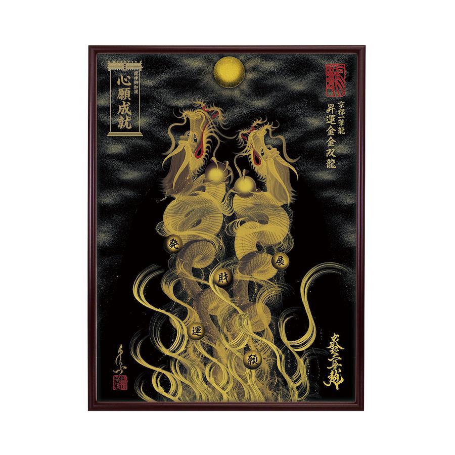 【商品の特徴】・京都一筆龍描画の種類/色彩は【26種】よりお選びいただけます<昇運龍14種(双龍5種/1体龍9種)> <守護龍10種(双龍2種/1体龍8種)> <縁結び龍2種(双龍2種)>・『京都一筆龍の御加護/御利益の象徴=胴体部分を一切途切れさせず一筆で描く動画』のQRコード印字ステッカー(2色/4サイズ)を同封お納めいたしております・描画に記載可能なお願い事は6種のご祈願内容より御選定いただけます心願成就/事業繁栄/金運上昇/健康祈願/家内安全/良縁成就・国内生産の高級額縁(デッサン額)を使用。額縁の色/機能は7種よりお選びいただけます。・龍の眼に光を宿し生気を吹き込む『龍の瞳(ラインストーン)』加工・京都一筆龍絵師手島啓輔署名、落款入り・御贈答のご利用も多く、懇切丁寧な包装
