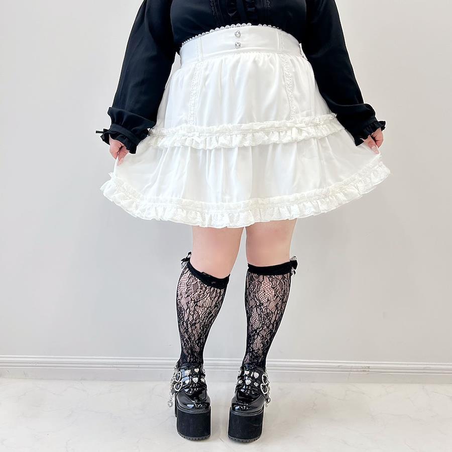 はしごレースがポイントの甘めのティアードスカート新登場?【デザイン】はしごレースがポイントの甘かわスカートウエスト部分に2つキラキラハートビジューボタンボリュームがあり、はしごレースがフリルの上に付いてるティアードスカート後ろにははしごレースがついたリボンがついたデザインになっています。【素材】しっかりとした素材になっています。本体に裏地付き、脇ポケット付きです。脇ファスナー、後ウエストゴム付きです。【コーディネート】量産型、甘めのコーデにピッタリのアイテムです。ロリータコーデにも合わせて頂くのもオススメです。《透け感》なし 《生地の厚さ》普通 《裏地》あり 《伸縮性》ややあり《生産国》中国