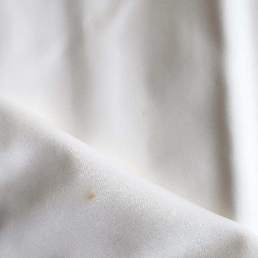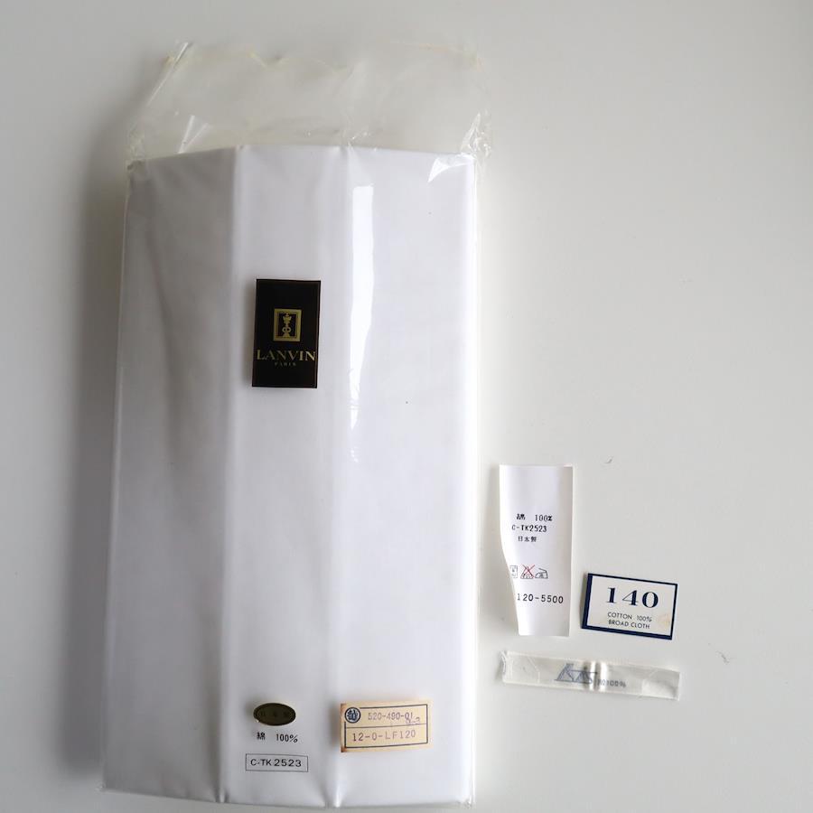 LANVIN(ランバン)の上質な白シャツ生地です。シミがありますが、ハンドメイドやリメイク素材として、ブランド生地をお求めやすく使いたい方におすすめです。小物制作や部分使いなどにも適しています。