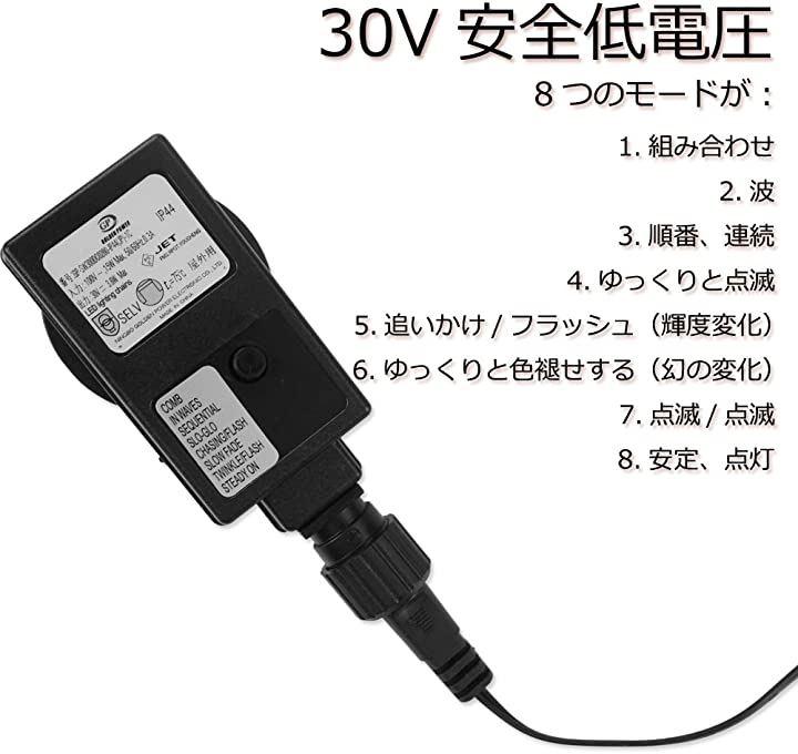 ・IP44防水レベル:イルミネーションライトは屋外で使用され、水滴飛散に耐えることができます。
