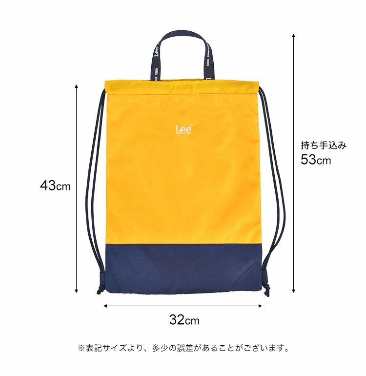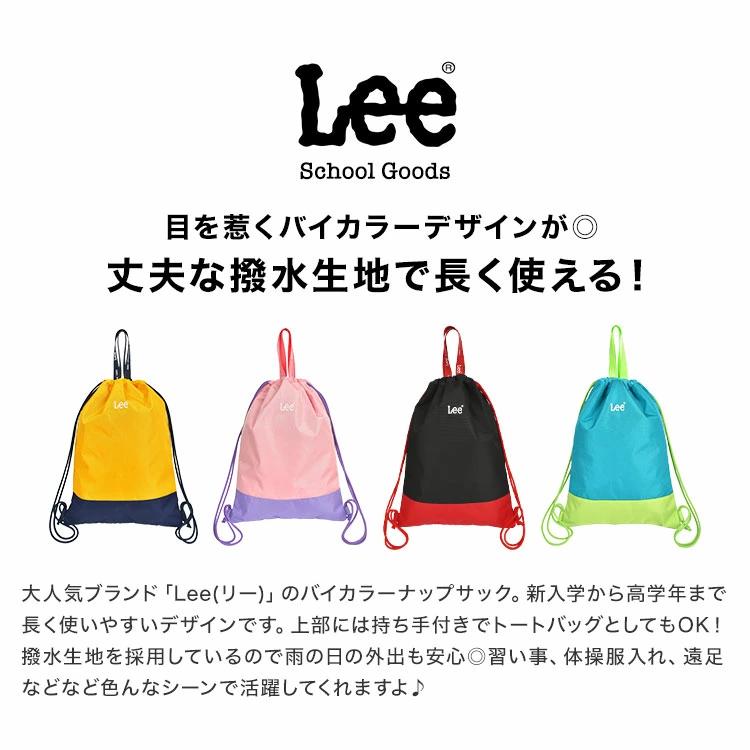【ナップサック】大人気ブランド「Lee(リー)」のバイカラーナップサック。新入学から高学年まで長く使いやすいデザインです。上部には持ち手付きでトートバッグとしてもOK!撥水生地を採用しているので雨の日の外出も安心◎習い事、体操服入れ、遠足などなど色んなシーンで活躍してくれますよ♪