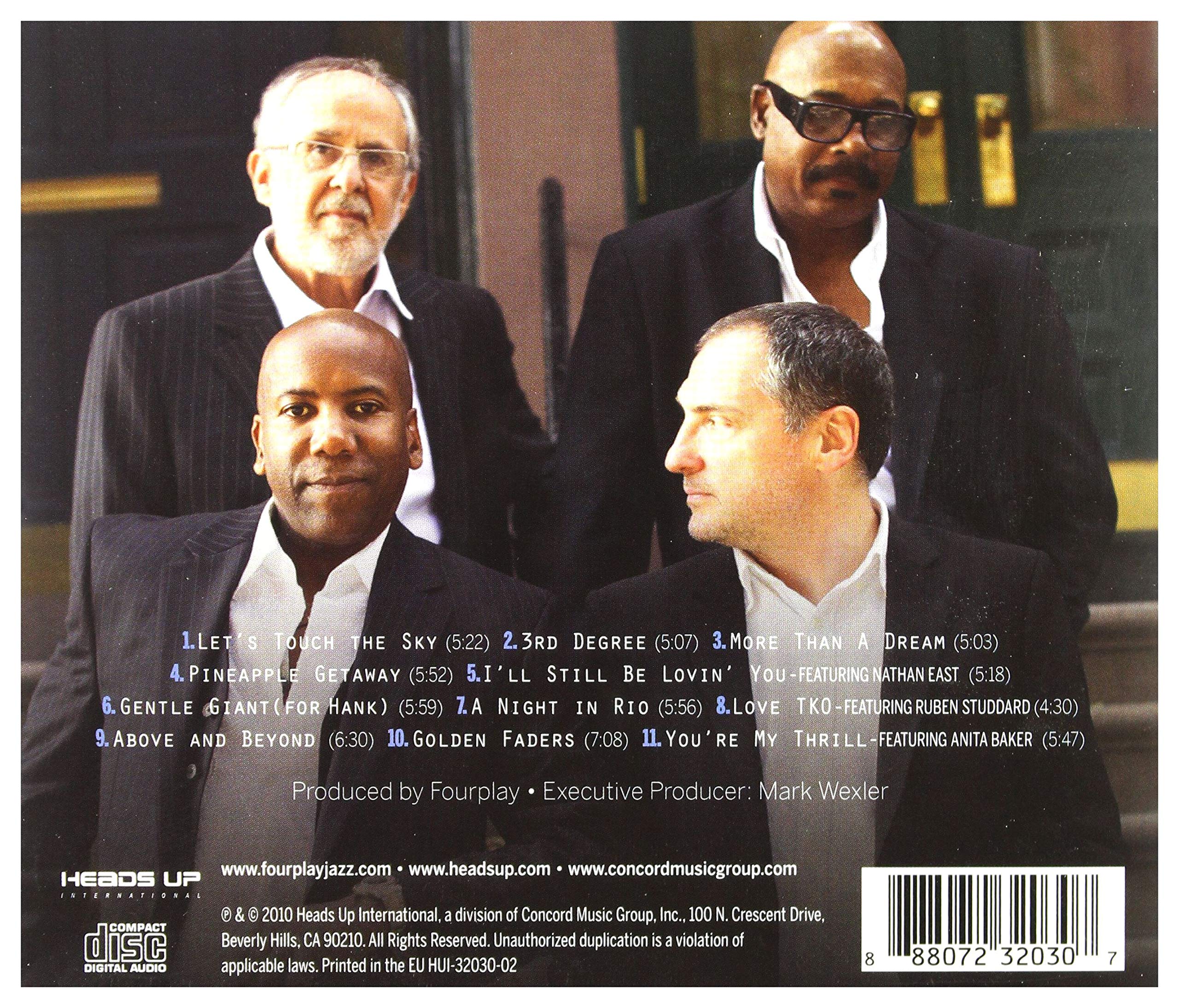 Sometimes you have to shake things up, push a little farther, reach a little higher - even when you're a contemporary jazz foursome that's been operating at the top of its collective game for two decades. After twenty years and a dozen albums, in an industry that has undergone sweeping transformations in the past decade, Fourplay knows that the only thing that's certain, in music or any other business, is change. The latest proof of that axiom is the new face in their lineup - that of guitarist Chuck Loeb, who makes his compelling debut with the quartet on Let's Touch The Sky.Loeb completes the four-man crew that also includes the band's founding members: keyboardist Bob James, bassist/vocalist Nathan East and drummer/percussionist Harvey Mason. Let's Touch The Sky also includes stirring performances by guest vocalists Anita Baker and Ruben Studdard. The infusion of new blood into the Fourplay lineup creates an opportunity to bring an even newer level of energy and inspiration into a band that is already known for taking chances and pushing the limits of contemporary jazz. "All four of us have been in this business long enough to know that there's always pressure to compromise, and we don't want to do that," says James. "We don't want to end up in the middle of the pack. We always aim to be leaders, and take the music to another level and raise the standards higher. I think the music on this new record, thanks in large part to Chuck's early contributions - and to the ongoing team spirit of the band as a whole - is very much a reflection of that philosophy."Loeb, who openly admits to being a fan of Fourplay since their earliest recordings, sees his new membership status as the opportunity of a lifetime. "I want to be a part of the legacy they've built, going all the way back to their first recording and right up to their most recent one," he says. "There's been an incredible level of quality in the musicianship, the writing, the whole sonic palette that they're famous for. I'm excited to be a part of the next step in the evolution of all that." That sense of romanticism combined with optimism defining the project makes the rhythmic and exotic title track the fitting opener to the set. Written by James, the song sits atop a comfortable Latin groove and showcases the interplay between the keyboardist and his new band mate on acoustic guitar. The follow-up track, Loeb's driving and intense "3rd Degree" is a reference to his role as the third guitarist in the Fourplay saga (the original lineup included Lee Ritenour, who was later replaced by Larry Carlton in the late `90s). The track is built on a syncopated rhythm that allows plenty of room for everyone on hand to stretch out and demonstrate their virtuosity.Guest vocalists Ruben Studdard and Anita Baker appear on the soulful "Love TKO" and the dreamlike "You're My Thrill," respectively. Studdard was recruited by East, after the two had appeared together in a live performance in Washington, DC. "They were filming a television special," East recalls. "There was a break to reload the cameras, and I just started playing the bass line of `Love TKO.' Ruben stepped up to the microphone to sing, and everyone in the room just stopped. I knew right then that we needed to have him sing this song on a Fourplay record, and when we asked him, he was very much up for it. The whole thing just came together so easily."Mason, who has held down the groove for Fourplay since the very beginning, says time has done nothing to dull the edge. The band continues to explore new ways to reach for the next level of musicianship and creativity. "Let's Touch The Sky is the perfect title for where we are right now," he says. "In some ways, bringing someone new into the fold has made us a new band. It opens up new opportunities and new potential, and we want to see how high we can take it."