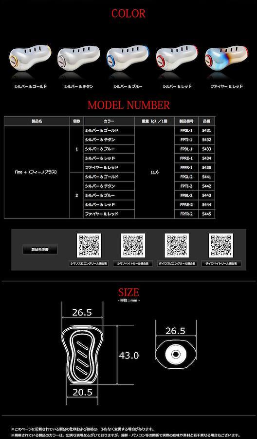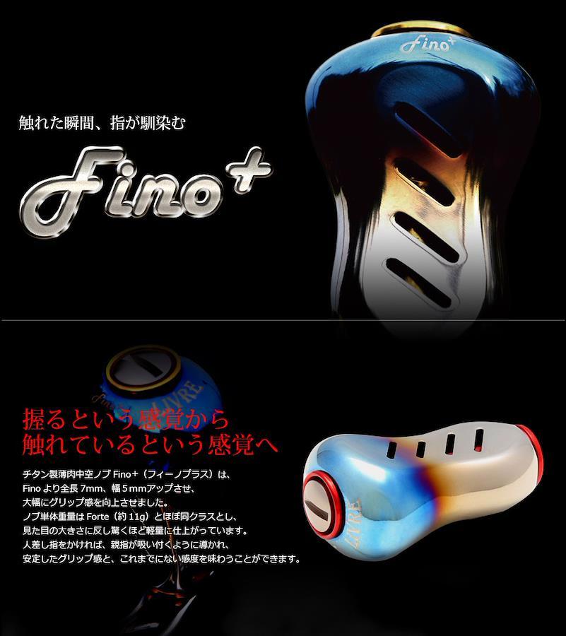 チタン製薄肉中空ノブFino+(フィーノプラス)は、Finoより全長7mm、幅5mmアップさせ大幅にグリップ感を向上させました。ノブ単体重量はForte(約11g)とほぼ同クラスとし、見た目の大きさに反し驚くほど軽量に仕上がっています。人差し指を掛ければ、親指が吸い付くように導かれ、安定したグリップ感と、これまでにない感度を味わうことができます。