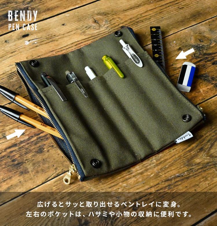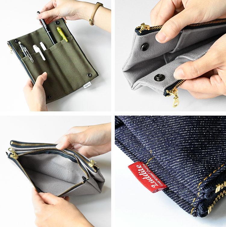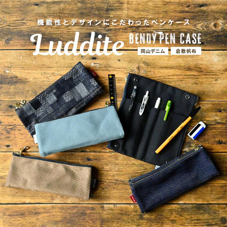 【ベンティペンケース】機能とデザインの融合で人気のラダイト 「ベンディペンケース」。開くとペンを1本ずつ収納できるようになっており、よく使うペンの位置をすぐに把握できます。ファスナーは信頼のYKK製でスムーズに開閉可能。素材は岡山デニムと倉敷帆布の2種類の素材からお選びいただけます。