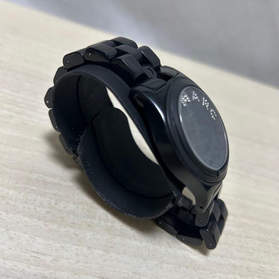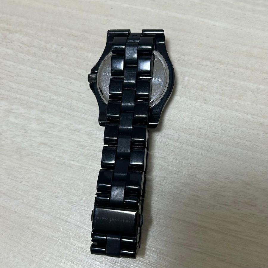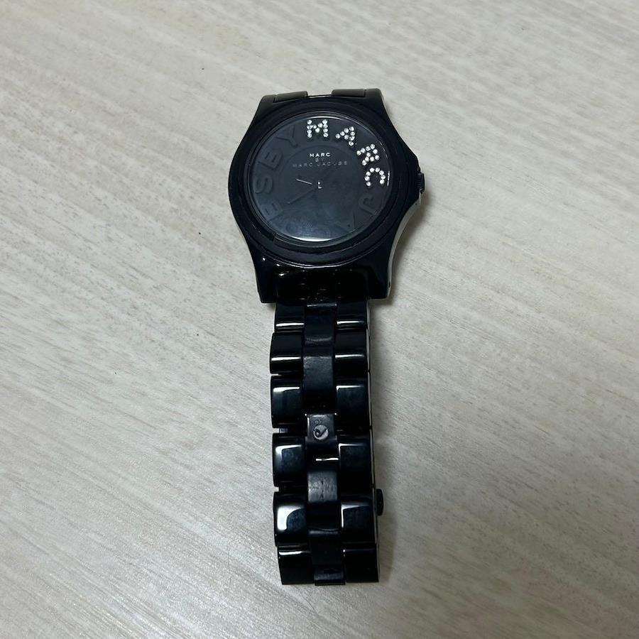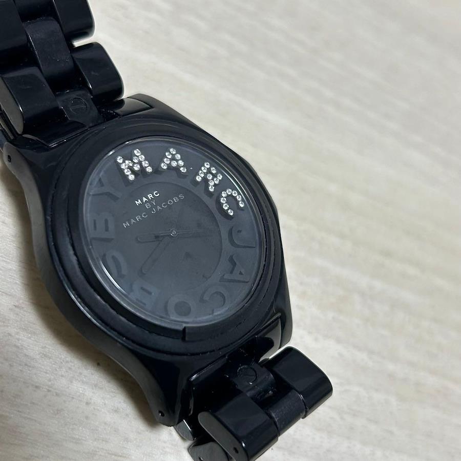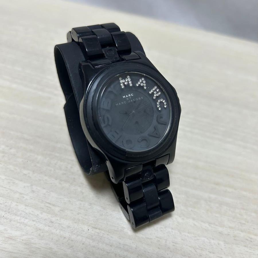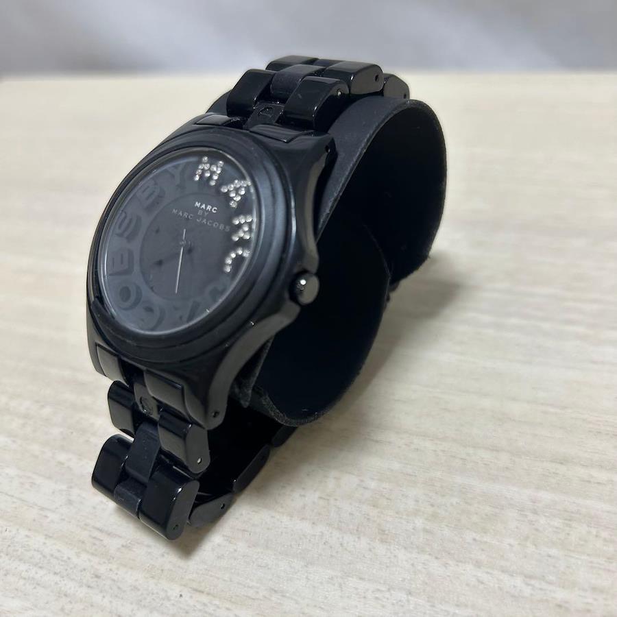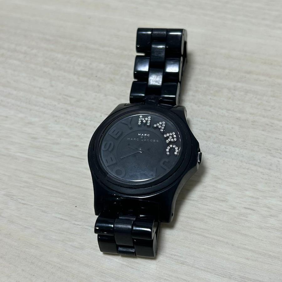 こちらは MARC BY MARC JACOBS ブラック ラインストーン 腕時計 リベラシリーズになります。