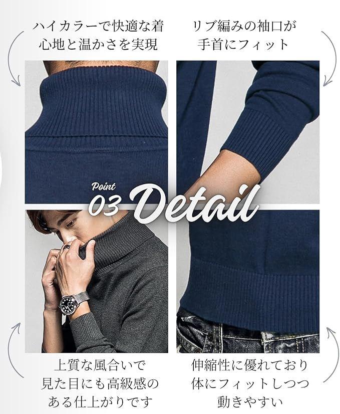 タートルネック特有の立体的なフォルムが上品な印象を与え、マフラーいらずの暖かさを実現。