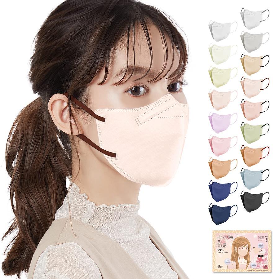 [MIR] マスク 3dマスク 52枚 不織布 息がしやすい 耳が痛くならない 肌に優しいマスク ノイズワイヤー 立体 使い捨てマスク 小顔 通気性 立体 カラー 花粉症対策 普通タイプ ピンクベージュ+耳紐モカカフェ