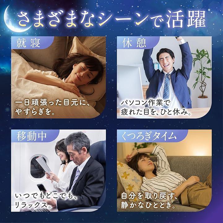 ふわふわの生地で目を包み込み、光や音を完全に遮断して、朝まで心地よく眠れます。