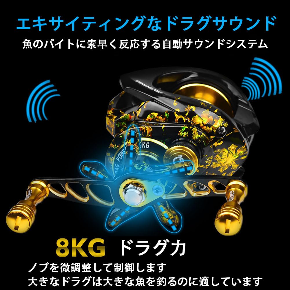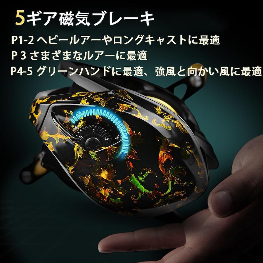 【長いサービスタイム】: 3+1BB シールド付き耐腐食性ボールベアリングにより、非常にスムーズなキャスティング、リトリーブ、長寿命を実現します。【軽量・滑らか】:ベイトリールは超軽量スプール搭載全体自重280gになり軽量実現、繰り返しキャスティングしでもリラックス、女性や子供も楽しく使用することができます。駆動系とスプール系にボールベアリング搭載しラッピング処理ドライブギア加えて滑らかな回転・長持ち回転耐久性実現されています。【快適な釣り】:手返しの良さを魅力です。軽量かつ小口径のスプール、キャストリラックス超軽量リール、バックラッシュ制限マグネットブレーキ、セラミックレベルワインドボールベアリング、ラッピング処理ドライブギアにより滑らかな回転、快適な釣り感じ実現。【釣りターケット】:淡水・海水両方使えるベイトリール 。フラックバス・ナマズ・雷魚・バス釣り・アジング・ソルトゲーム・トラウト釣り・穴釣り・渓流釣り・川釣り・シーバス・ロックフィッシュ・根魚・メバリング・キジハタ釣りすすめる。【素晴らしい贈り物】:誕生日プレゼント、ホリデーギフト、新年の贈り物として、お気に入りの友人、家族、クラスメートなどに贈ってください。彼らはこのベイトリール をとても気に入って、幸せな気分にして、とても楽しむでしょう。